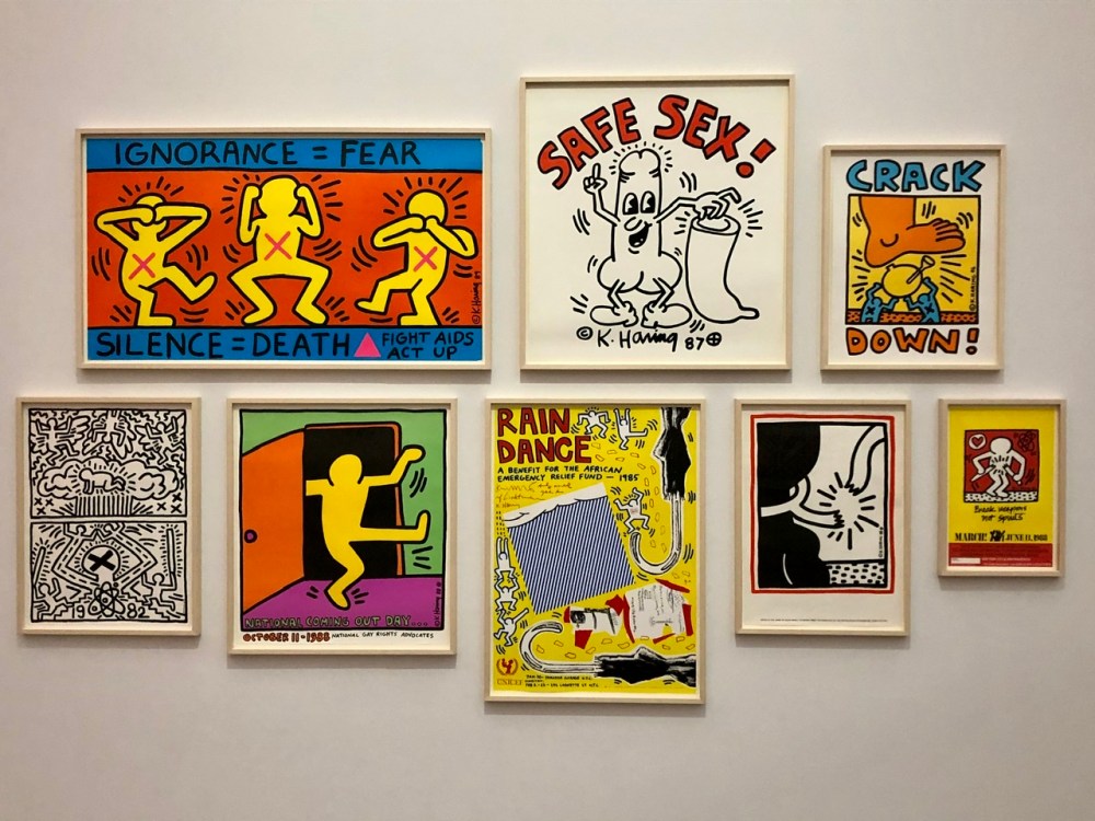 Keith Haring est une icône populaire qui a largement participé à la démocratisation de l’art («l’art doit s’adresser à tous et non à une élite fortunée») et un artiste prolifique doté d’une incroyable énergie (il a créé plus de 10.000 œuvres en moins de 10 ans) mais c’est surtout un artiste activiste. En temps que porte-parole de sa génération, il a défendu de multiples causes (toujours actuelles pour la plupart) : lutte contre le racisme, l’apartheid, les dictatures politiques, le capitalisme, l’homophobie, le sida, la toxicomanie, le nucléaire… ces dernières œuvres, alors qu’il sait qu’il va mourrir du sida, sont particulièrement sombres et illustrent l’enfer de la maladie. Il célèbrera néanmoins la vie jusqu’à sa mort en 1990.