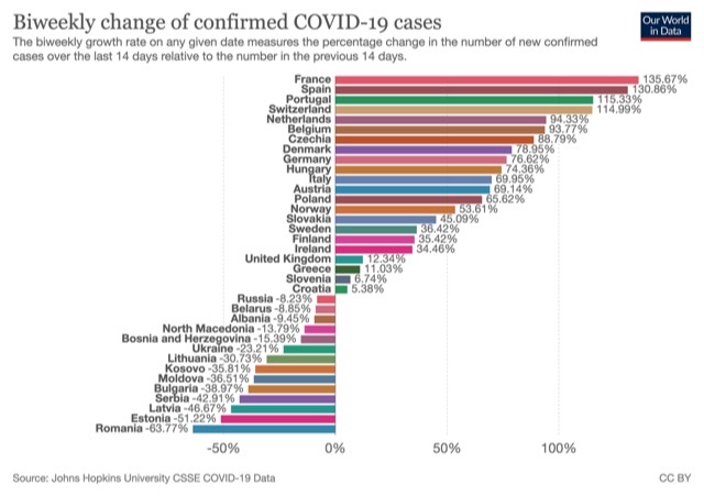 📈Evolution en image du nombre de cas en Allemagne, France, Au Royaume-Uni, Dänemark, en Espagne et Italie :