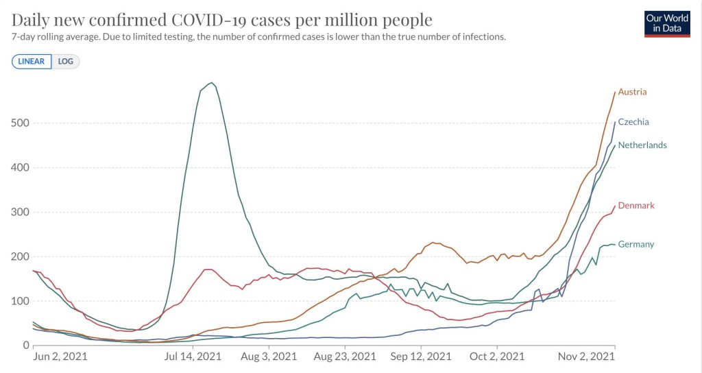 - ALLEMAGNE : + 13.531 cas en 24h (3.956.387), +23 décès (92.223), 75,7 incidence ↗️